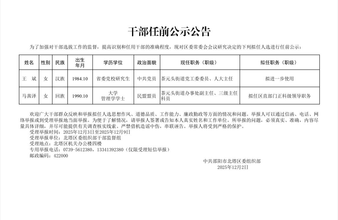 干部任前公示公告