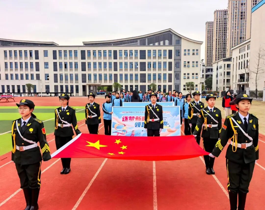 上午8时整,雄壮的《运动员进行曲》响彻校园,运动会开幕式正式拉开序幕。国旗队昂首挺胸,护旗前行;鼓乐队铿锵奏响,节奏昂扬;彩旗队挥舞旗帜,色彩飞扬,三支队伍依次入场,尽显飒爽英姿。紧随其后的各班方阵,身着统一服装,迈着整齐矫健的步伐,喊着嘹亮激昂的班级口号,精神饱满地走过主席台,每一张稚嫩的脸庞都洋溢着自信,每一个挺拔的身影都彰显着芙蓉学子朝气蓬勃、昂扬向上的青春风采。