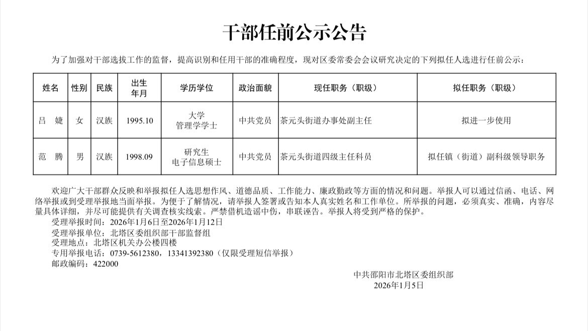 干部任前公示公告