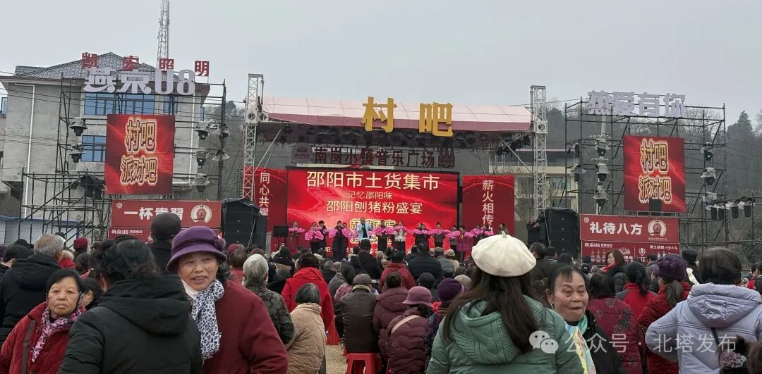 北塔融媒消息 为丰富市民新春文化生活,激活本土年味,传递惠民温度,2月1日,邵阳市首届土货集市刨猪粉活动(第二场)在北塔区新滩镇街道江北社区南岗小镇热闹启幕。得益于第一场活动的火爆反响,第二场活动规模全面升级,以200桌宴席、2000碗免费刨猪粉的诚意,再次点燃市民参与热情。热气腾腾的刨猪粉刚端上桌,就香气四溢,吸引了大批市民有序排队品尝,现场人声鼎沸、年味浓郁。