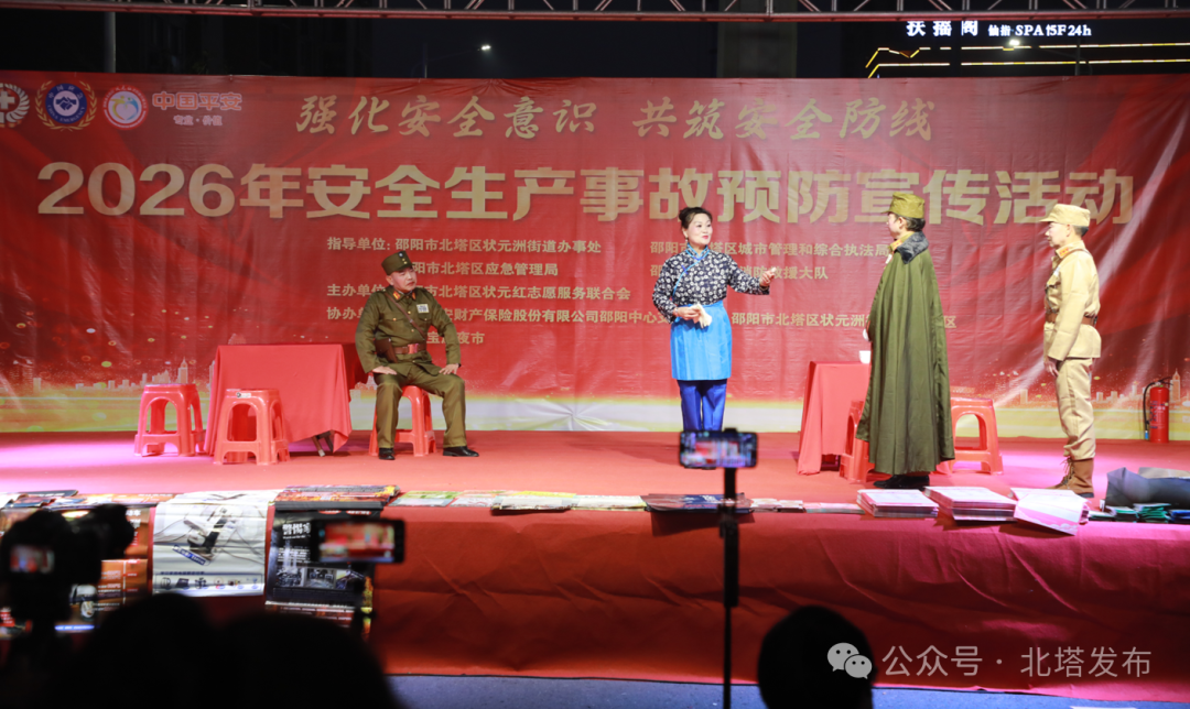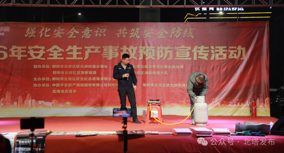 北塔融媒消息 1月17日晚,北塔区在资枣社区宝庆夜市开展以“强化安全意识,共筑安全防线”为主题的安全宣传活动,创新打造“政策宣讲+文艺浸润+实操演练”三位一体模式,为基层社会治理注入安全动能,吸引千余人次参与。