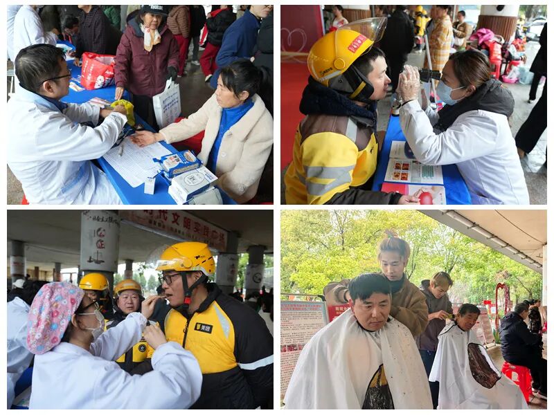 仪式结束后,现场化身为志愿服务的大集市。“健康护航站”前,康丽口腔、爱尔眼科等爱心单位为骑手们提供免费义诊;“技能提升营”里,状元红水上救援队志愿者手把手教授心肺复苏急救技能;“暖心服务区”结合“二月二龙抬头”传统,义剪志愿者们为骑手们修剪出清爽发型。此外,“雷锋日记”主题展、手绘留言板、合影打卡墙等互动区域,也吸引大家纷纷驻足参与,在潜移默化中感悟雷锋精神。