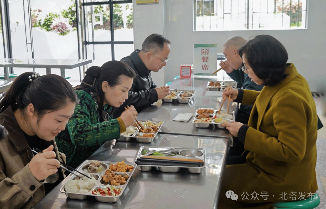 北塔融媒消息 3月31日中午,北塔区委书记张龚到芙蓉学校东校区,走进学生食堂落实校园陪餐制度,实地督导校园食品安全与学生就餐保障工作。副区长李卫兵,区教育局、区市监局主要负责人参加陪餐与督导活动。