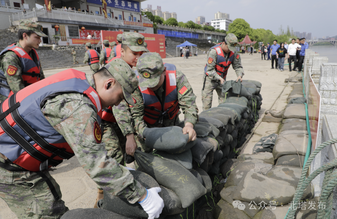 北塔融媒消息  4月24日下午,北塔区在资江北岸安澜阁码头举行2026年防汛抢险军地联合演练,全面检验全区防汛抢险应急处置能力和军地协同作战水平,为安全度汛奠定了坚实基础。区委书记张龚,区委副书记、区长姚文娟,区委常委、常务副区长王永红,区委常委、区人武部部长银烈华参加活动。